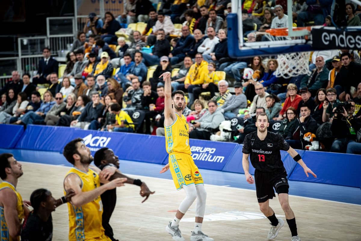 Salió el Coviran Granada como un tiro al parqué del Gran Canaria Arena. El equipo dirigido por Ramón Díaz rozó la perfección a nivel defensivo y tuvo al conjunto local casi 4 minutos sin anotar, tiempo que aprovecharon los rojinegros para escaparse gracias al acierto de Tunde Olumuyiwa y Lluís Costa. Los visitantes echaron el cerrojo a su aro y los puntos de Luka Bozic y un espectacular triple de Jassel Pérez en su debut dispararon a los nazaríes. Beqa Burjanadze cerró el acto inicial con un triple sobre la bocina que situó el 13-26 tras un parcial de 4-15.