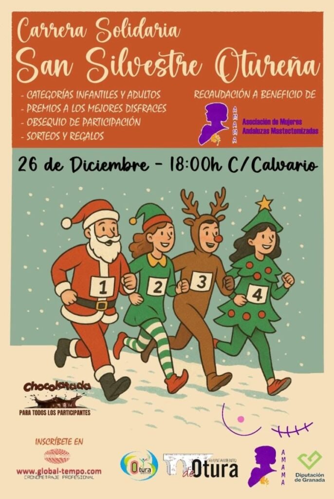 La concejalía de Deportes del Ayuntamiento de Otura ha presentado este evento deportivo, que se celebrará el próximo 26 de diciembre y cuyo plazo de inscripción se encuentra abierto hasta el día 23 de diciembre a las 14 horas. A partir de esa fecha, solo se podrán inscribir deportistas locales, y el mismo día de la prueba podrá hacerlo todo quien quiera, pero solo en la modalidad de dorsal solidario.